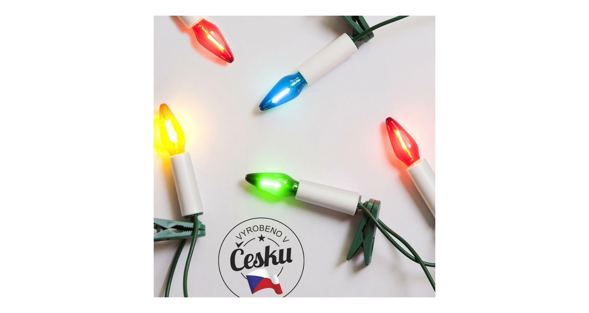 Délka přívodního napájecího kabelu s vidlicí 5m. Rozteč mezi žárovkami 70cm.